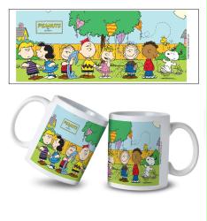 This is a brand new, officially-licensed, 11 oz ceramic mug of Charles M. Schulz's beloved Peanuts gang hanging out in the yard. The mug was produced by Pyramid America and will come in a black mug box, perfect for gift-giving. The image shows what the full wrap-around design of the mug looks like. The mug is both microwave and dishwasher safe.