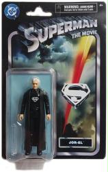 This is an officially-licensed, approximately 4-inch action figure of Jor-El from the classic 1978 film Superman: The Movie. Please note that the plastic display bubbles for this entire line of 3.75-inch scale figures were taped to the backing card by the manufacturer rather than glued, so these figures were not opened and resealed, but were originally taped by Spin Master. The figure was produced by Spin Master in 2025 and remains new and sealed in its original VERY GOOD to NEAR MINT packaging. The packaging's backing card may have a few small, minor dings to its edges.
