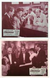 This is a collection of 2 original lobby cards promoting the 1942 U.S. release of the William Dieterle film entitled Syncopation. The lobby cards each measure approximately 14" X 11" and were printed on paper stock. The lobby cards remain in VERY GOOD condition with light bends in several corner areas. The lobby cards feature the film's cast; including Adolphe Menjou, Jackie Cooper, Bonita Granville, George Bancroft, Mona Barrie, and Ted North.